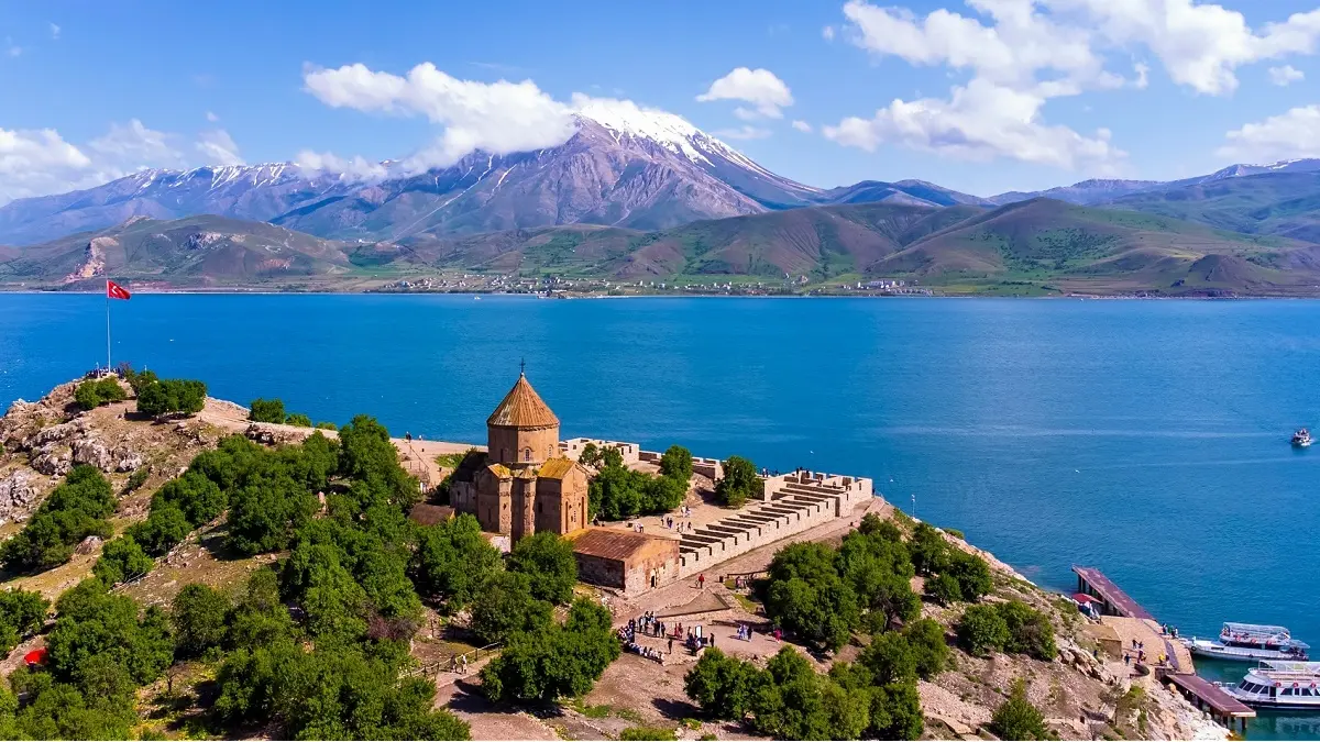 Van Gölü çevresinde yer alan dört adadan en büyüğü olan Akdamar Adası, Van şehir merkezine 47 km. uzaklıkta konumlanıyor. Aynı zamanda Ahtamara olarak da bilinen adanın resimde görüldüğü üzere en sembolik yapısı ise, Ermeniler tarafından inşa edilen 1100 yaşındaki Kutsal Haç Kilisesi. Akdamar Adası’na gitmek için tek yapmanız gereken, Gevaş Akdamar iskelesinden kalkan tekneye binmek. Adada yer alan kafelerde atıştırmalık bir şeyler bulabilirsiniz ama konaklama olarak pek fazla seçenek yok. Dolayısıyla adaya en yakın bölge olan Gevaş ya da Van merkezde konaklayabilirsiniz. Adada denize girmek gibi bir düşünceniz varsa; adanın kuzey kıyılarını tercih etmelisiniz.