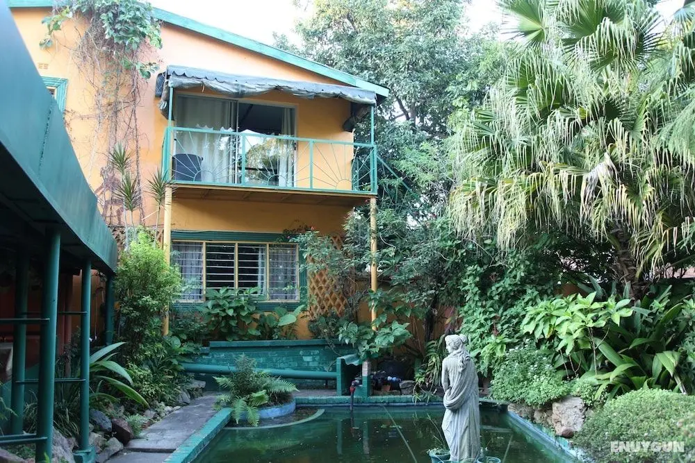 Bu küçük otelde sigara içmek için özel alanlar var.