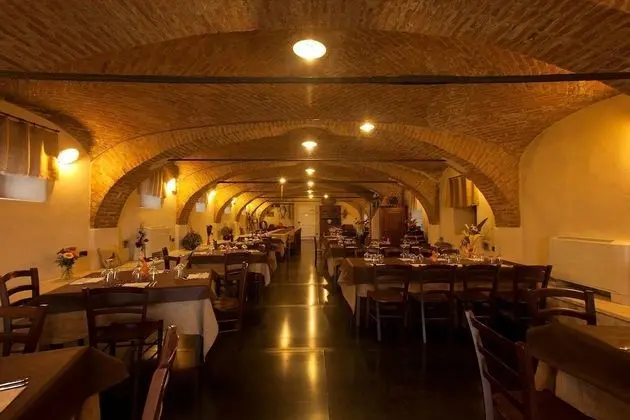 Agriturismo San Michele misafirlerine restoranda yemek servisi yapılıyor.