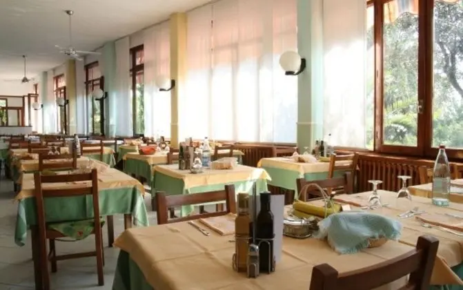Albergo Villa Levi misafirlerine restoranda yemek servisi yapılıyor. Misafirlere her gün 8.00 ve 9.00 arasında ücretli açık büfe kahvaltı servisi yapılmaktadır.