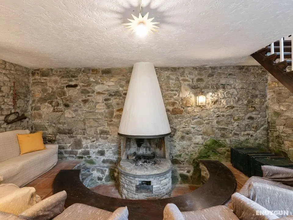 Bu ayrı ayrı döşenmiş tatil evinde misafirler için şömine ve özel havuz mevcut.