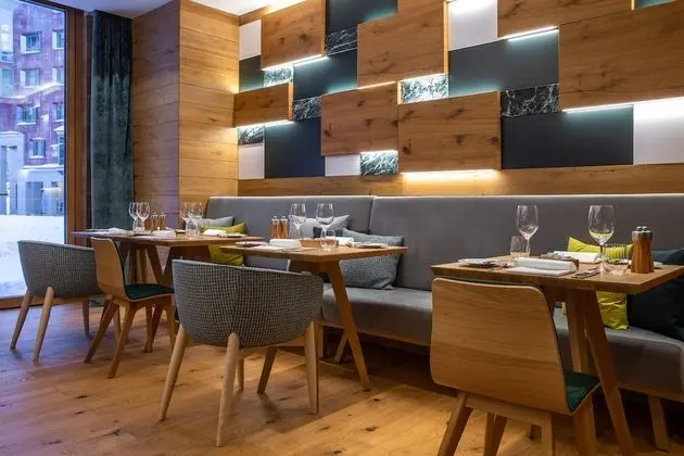 Andermatt Alpine Apartments misafirlerine restoranda yemek servisi yapılıyor.