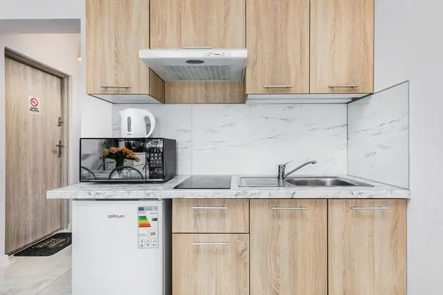 Bu dairede mutfak, buzdolabı ve set üstü ocak var. Size özel, balkon vardır. Misafirler için mikrodalga fırın olan küçük mutfak. Keyifli vakit geçirmeniz için ücretsiz kablosuz İnternet sunuluyor.