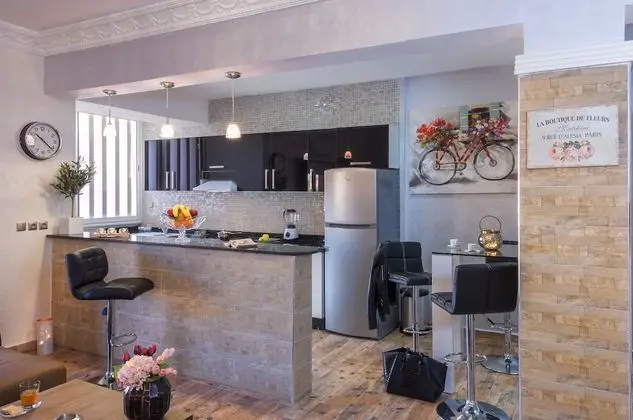 Appartements Luxury Services misafirlere Marrakech merkezinde, Carré Eden Alışveriş Merkezi ve Harti Bahçesi ile 5 dakika yürüyüş mesafesinde konaklama fırsatı sunuyor. Bu apart daire Jemaa el-Fnaa Pazarı ile 1,6 mi (2,6 km) ve Altıncı Muhammed Caddesi ile 0,5 mi (0,8 km) mesafede.