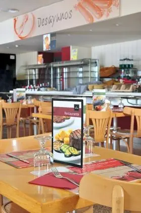 As Hotels Chucena misafirlerine restoranda yemek servisi yapılıyor. Oteldeki bar/oturma salonu misafirlere içecek servisi yapıyor.
