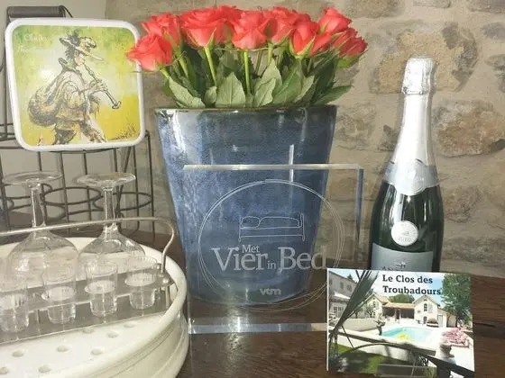 B&B Le Clos des Troubadours misafirlerine restoranda yemek servisi yapılıyor. Barda/oturma salonunda ve havuz kenarı barında misafirlere içecek servisi yapılmaktadır. Misafirlerimize her gün yerel tarzda servisi yapılmaktadır.