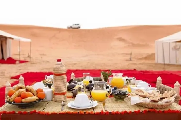 Restoranda Bassou Luxury Camp misafirlerine yemek servisi yapılıyor, isterseniz hafif yemek büfesi/şarküteri alternatifi de var. Misafirler için her gün ücretsiz resepsiyon mevcuttur. Misafirlere içecek servisi olan bar/oturma salonu veya havuz kenarı barı bulunuyor. Misafirlerimize her gün açık büfe servisi yapılmaktadır.