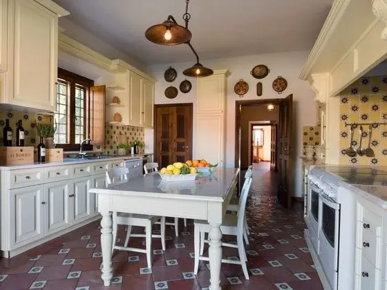 Bu ayrı ayrı döşenmiş tatil evinde misafirler için şömine ve özel havuz mevcut.