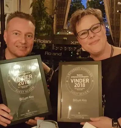 Billum Kro misafirlerine restoranda yemek servisi yapılıyor. Misafirlere hafta içi 6.30 ve 10.00 arasında ücretli açık büfe kahvaltı servisi yapılmaktadır.