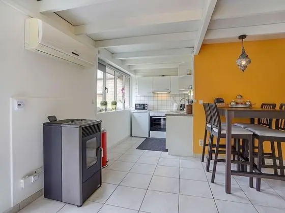 Bu ayrı ayrı döşenmiş tatil evinde mutfak, buzdolabı ve set üstü ocak var. Misafirlerin konforu için mikrodalga fırın ve çamaşır makinesi/kurutma makinesi sunulmaktadır.