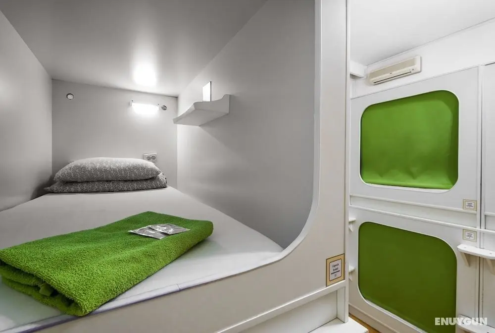 Kapsül otelde oda servisi sunuluyor.