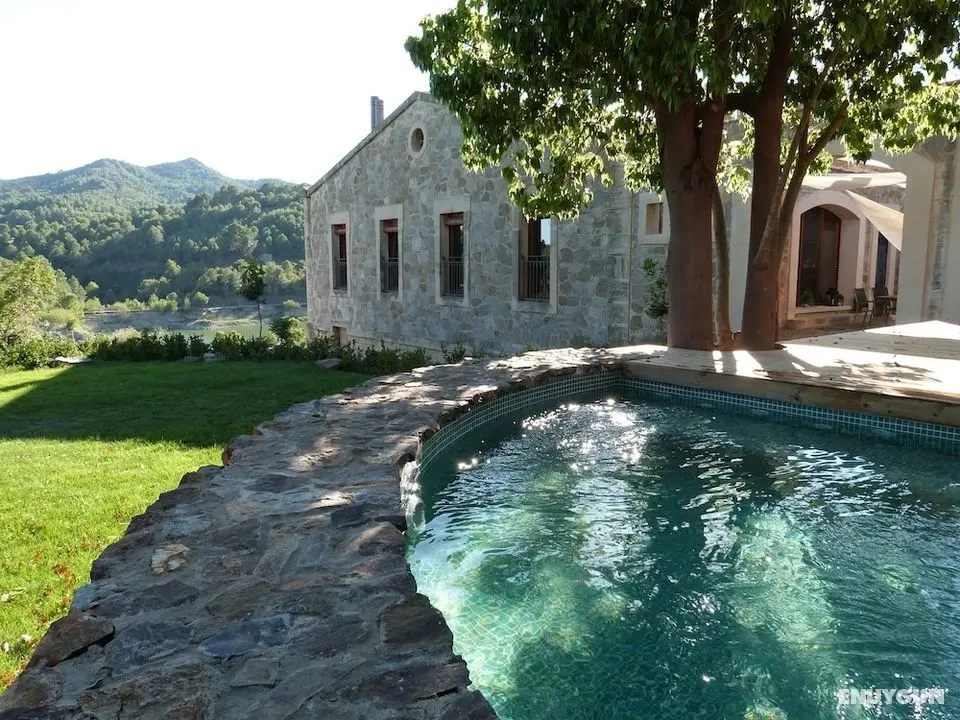 Casa Vella del Pantà de Riudecanyes misafirlerine restoranda yemek servisi yapılıyor.