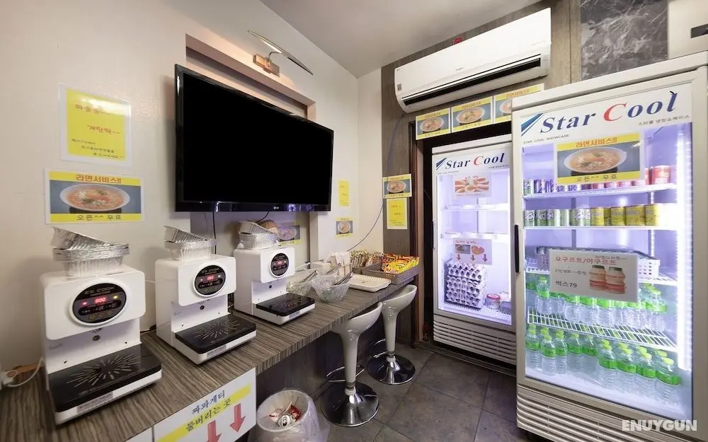 Cheongju Buks79 misafirlerine yemek servisi yapan hafif yemek büfesi/şarküteri vardır.