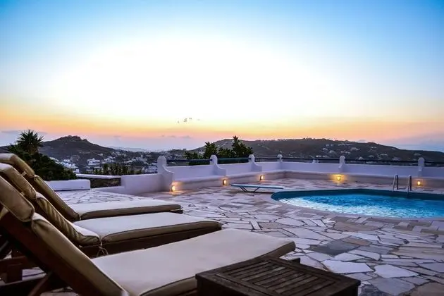 Bu tatil evi misafirlere Mikonos bölgesinde, plaj yakınında, Mikonos Yeni Limanı ve Ege Adaları ile 15 dakika sürüş mesafesinde konaklama fırsatı sunuyor. Bu tatil evi Mykonos Eski Limanı ile 2,7 mi (4,3 km) ve Paradise Beach ile 2,8 mi (4,5 km) mesafede.