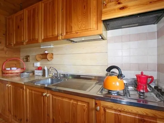 Bu ayrı ayrı döşenmiş kır evinde mutfak mevcut.