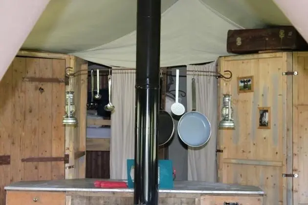 Bu kamp alanında küçük mutfak var. Misafirlerin konforu için buzdolabı ve kahve/çay makinesi sunulmaktadır; ayrıca ütü/ütü masası isteyebilirsiniz.