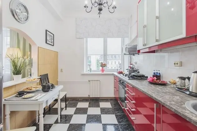 Bu apart daire misafirlere Moskova (Merkez İdari Okrugu) bölgesinde, Piskopos Gölü bölgesi ve Sadovoye Koltso ring bulvarı ile 5 dakika yürüyüş mesafesinde konaklama fırsatı sunuyor. Bu daire Kremlin ile 2,2 mi (3,5 km) ve Kızıl Meydan ile 2,5 mi (4 km) mesafede.