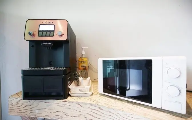 Gyeryong Mongiya misafirlerine yemek servisi yapan hafif yemek büfesi/şarküteri vardır.