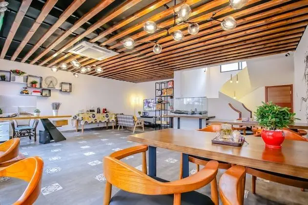 Hangzhou Tom's Home misafirlerine restoranda yemek servisi yapılıyor.
