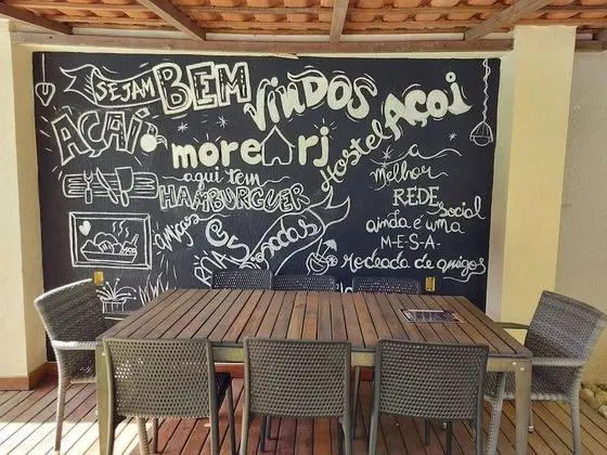 Hostel More RJ misafirlerine restoranda yemek servisi yapılıyor.