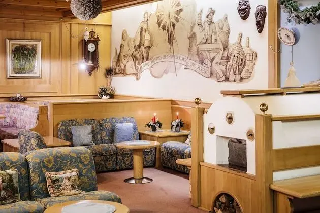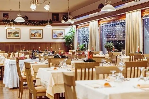 Hotel Coldai misafirlerine restoranda yemek servisi yapılıyor. Oteldeki bar/oturma salonu misafirlere içecek servisi yapıyor.