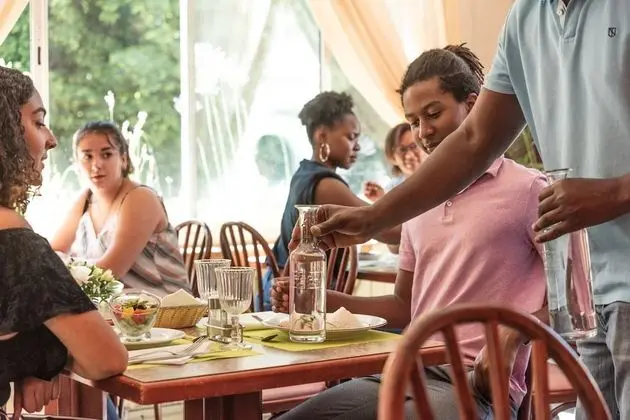 Hotel des Bains misafirlerine restoranda yemek servisi yapılıyor. Barda/oturma salonunda misafirlerimize içecek servisi yapılmaktadır. Misafirlere her gün 7.00 ve 10.00 arasında ücretli kontinental kahvaltı servisi yapılmaktadır.