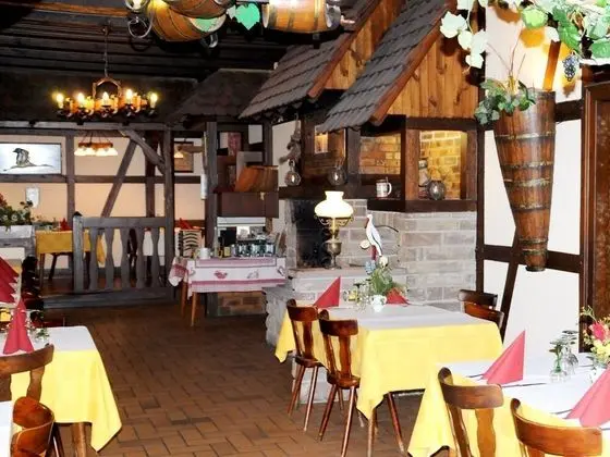 Hôtel Restaurant Au Parc des Cigognes misafirlerine restoranda yemek servisi yapılıyor. Misafirlere her gün 7.00 ve 9.30 arasında ücretli kontinental kahvaltı servisi yapılmaktadır.