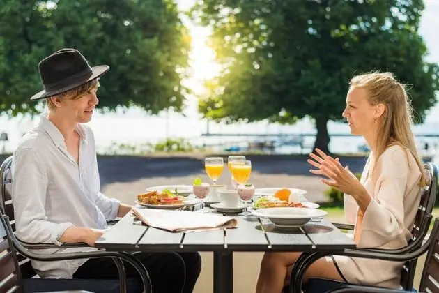 Hotell Bellevue misafirlerine restoranda yemek servisi yapılıyor. Oteldeki bar/oturma salonu misafirlere içecek servisi yapıyor. Ücretsiz açık büfe kahvaltı servisi hafta içi 7.00 ve 10.00, hafta sonu 7.00 ve 10.00 arasında yapılmaktadır.