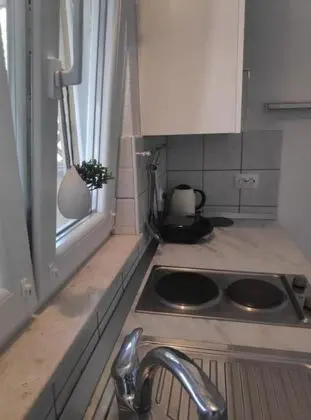 Klimalı bu dairede şömine keyfi sizi bekliyor. Misafirler için set üstü ocak olan mutfak.