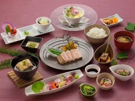 JR Hotel Yakushima misafirlerine restoranda yemek servisi yapılıyor.