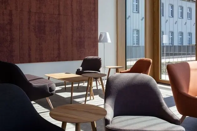 Katholisch-Soziales Institut misafirlerine restoranda yemek servisi yapılıyor. Serinletici bir içecekle rahatlamak için 2 bar/dinlenme salonu ideal.