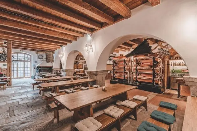 Krumlovský mlýn, Krumlov Mill Apartments misafirlerine yemek servisi yapıyor. Barda/oturma salonunda misafirlerimize içecek servisi yapılmaktadır.