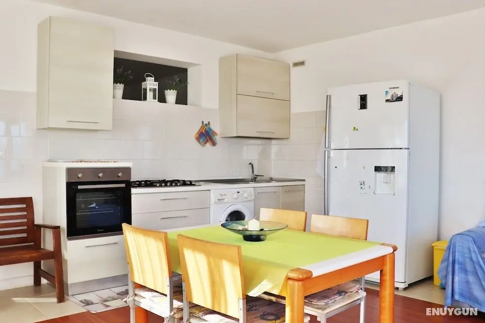 Klimalı bu dairede mutfak, buzdolabı ve fırın var.
