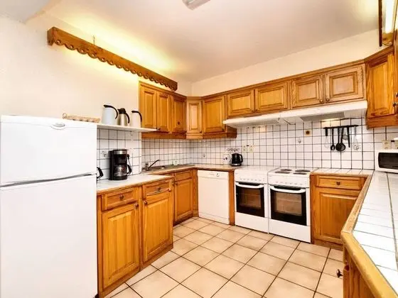 Bu ayrı ayrı döşenmiş tatil evinde şömine var. Misafirler için buzdolabı, set üstü ocak ve mikrodalga fırın olan mutfak.