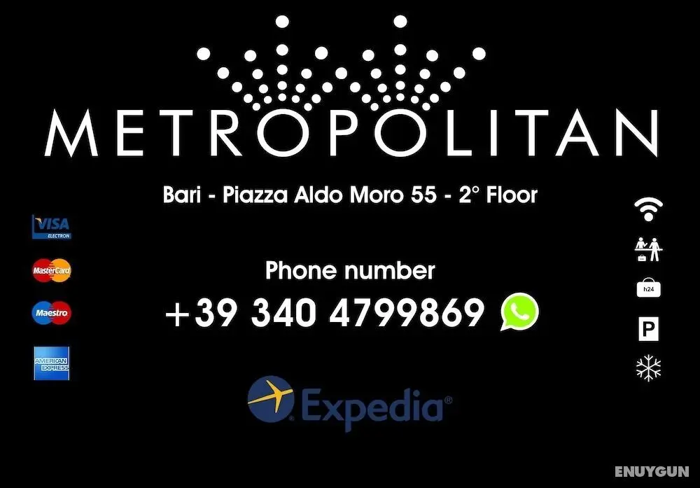 Metropolitan misafirlere Bari merkezinde, Aldo Moro Meydanı yakınında ve Bari Üniversitesi ile yürüyerek 5 mesafede konaklama fırsatı sunuyor. Bu oda ve kahvaltı sunan otel Bari Limanı ile 1,1 mi (1,8 km) ve Corso Cavour ile 0,4 mi (0,6 km) mesafede.