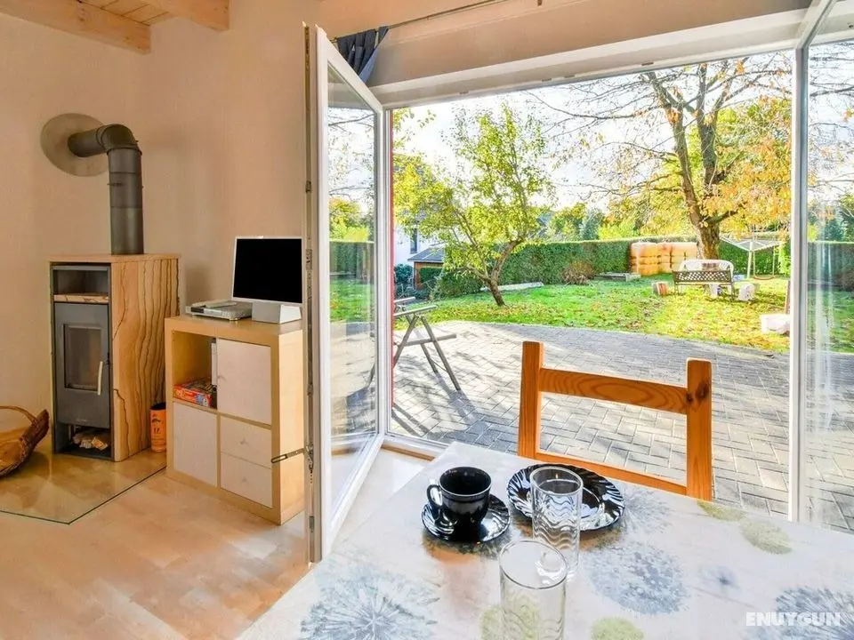 Bu ayrı ayrı döşenmiş tatil evinde şömine var. Misafirlerin konforu için buzdolabı ve kahve/çay makinesi sunulmaktadır.