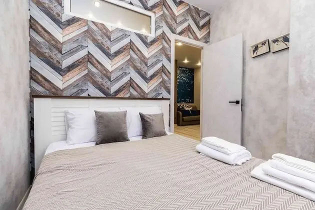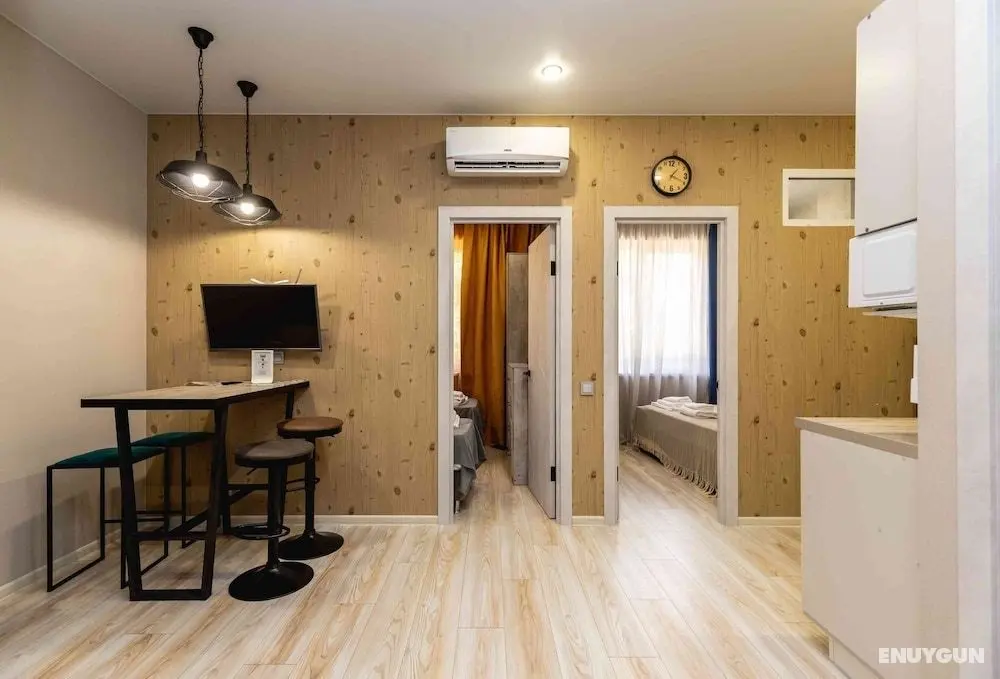 Sirius (Adler Kent Merkezi) bölgesindeki bu apart daire misafirlere Olimpiyat Plajı ve Mandarin Alışveriş Merkezi ile 15 dakika yürüyüş mesafesinde konaklama fırsatı sunuyor. Bu daire River Mzymta ile 0,4 mi (0,6 km) ve Adler Plajı ile 0,4 mi (0,7 km) mesafede.