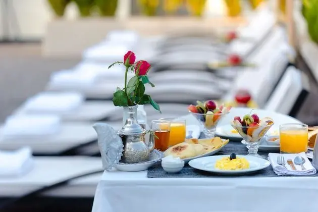 Riad otelin restoranı misafirlere öğle yemeği veya akşam yemeği servisi yapıyor, ayrıca belirli saatlerde oda servisi imkanı mevcut. Oteldeki bar/oturma salonu misafirlere içecek servisi yapıyor. Misafirlerimize her gün kontinental servisi yapılmaktadır.