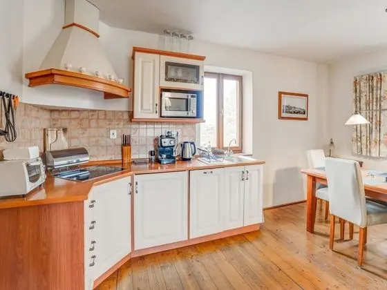 Bu ayrı ayrı döşenmiş tatil evinde mutfak, buzdolabı ve set üstü ocak var. Misafirlerin konforu için mikrodalga fırın ve çamaşır makinesi/kurutma makinesi sunulmaktadır.