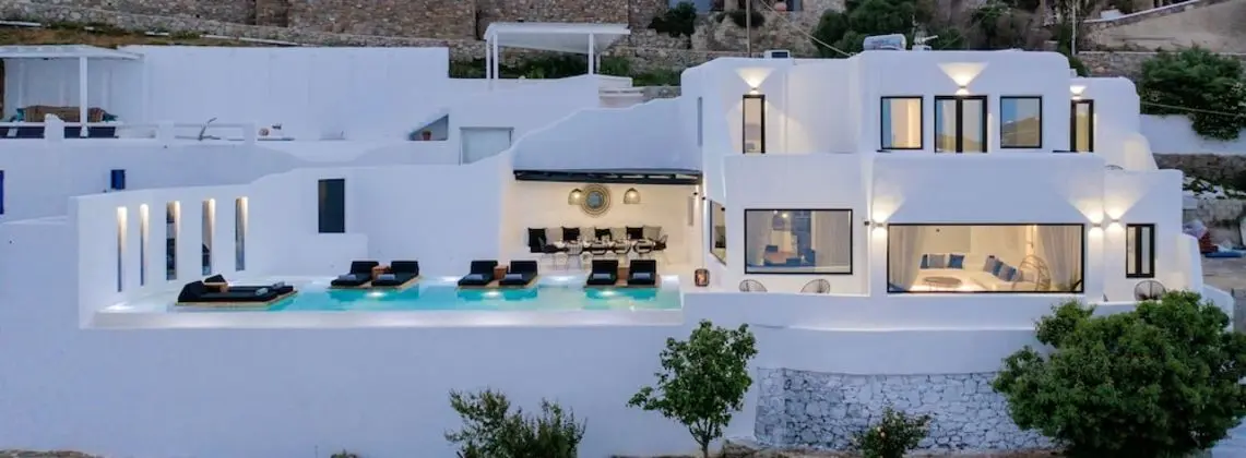 Mikonos bölgesindeki bu tatil evi misafirlere eğlence bölgesinde, Ege Adaları ile 1 dakika sürüş mesafesinde ve Kórfos ile 6 dakika mesafede konaklama fırsatı sunuyor. Bu 5 yıldızlı tatil evi Ornos Plajı ile 2,6 mi (4,1 km) ve Mykonos Eski Limanı ile 3,4 mi (5,5 km) mesafede.