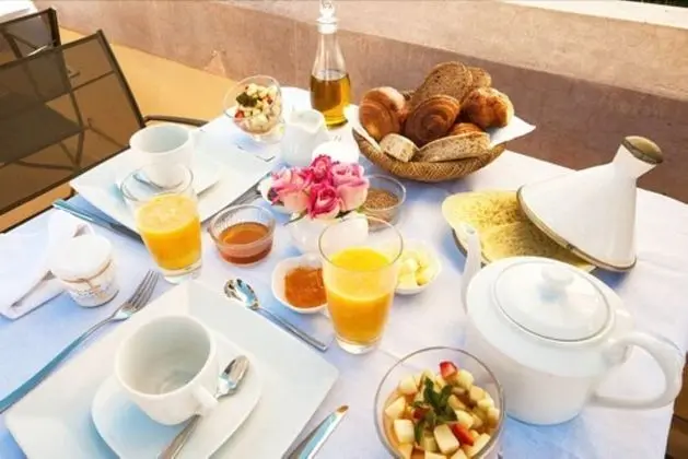 Riad otelin restoranı misafirlere öğle yemeği veya akşam yemeği servisi yapıyor, ayrıca belirli saatlerde oda servisi imkanı mevcut. Misafirler için her gün ücretsiz resepsiyon mevcuttur. Misafirlerimize her gün tam servisi yapılmaktadır.