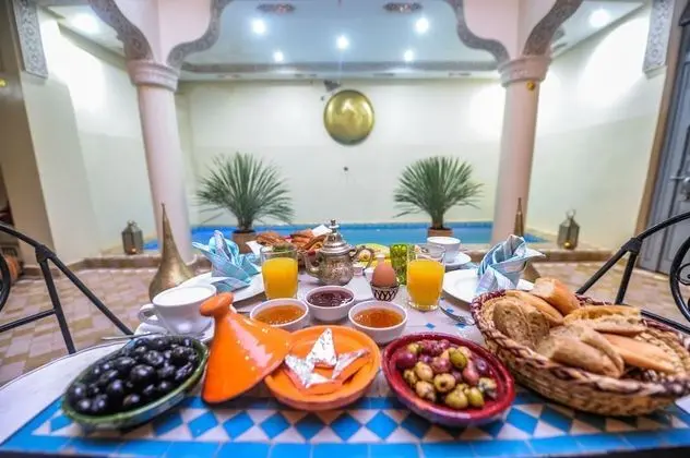 Riad otelin restoranı misafirlere öğle yemeği veya akşam yemeği servisi yapıyor, ayrıca belirli saatlerde oda servisi imkanı mevcut. Misafirler için her gün ücretsiz resepsiyon mevcuttur. Misafirlerimize her gün kontinental servisi yapılmaktadır.