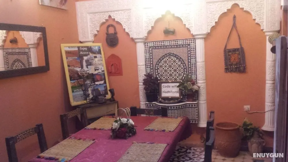 Restoranda yemek servisi yapılıyor, ayrıca riad otelde belirli saatlerde oda servisi sunuluyor. Misafirler için her gün ücretsiz resepsiyon mevcuttur. Misafirlere her gün 8.30 ve 10.30 arasında ücretli yerel tarzda kahvaltı servisi yapılmaktadır.