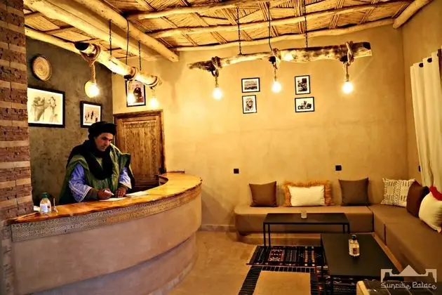 Rissani bölgesindeki Sunrise palace merzouga misafirlere Erg Chebbi ile 1 dakika sürüş mesafesinde ve Igrane Palmiye Korusu ile 7 dakika mesafede konaklama olanağı sunuyor. Bu pansiyon Dayet Srij Gölü ile 6,6 km (4,1 mil) ve Ksar El Fida ile 35,5 km (22,1 mil) mesafede.