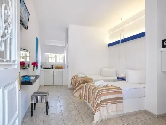 Kimolos bölgesindeki Thalasea Kimolos misafirlere deniz kıyısında, Ege Adaları ile Aliki Beach 5 dakika yürüme mesafesinde konaklama fırsatı sunuyor. Bu pansiyon Pollonia Plajı ile 5,6 mi (9 km) ve Sarakiniko Plajı ile 10,8 mi (17,4 km) mesafede.