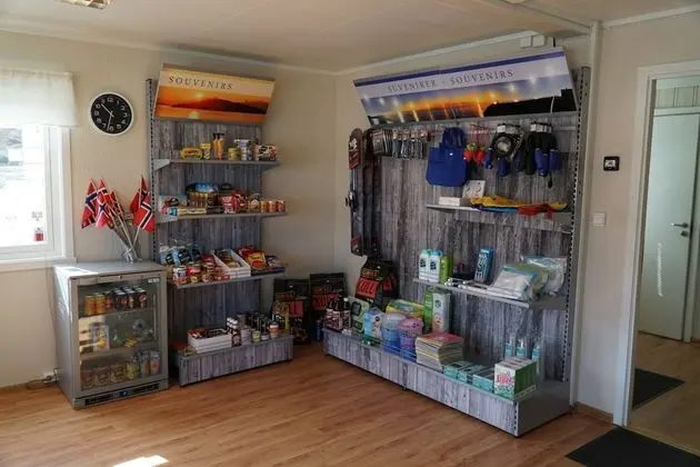 Tjeldsundbrua Camping misafirlerine yemek servisi yapan hafif yemek büfesi/şarküteri vardır.