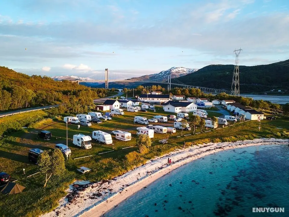Tjeldsundbrua Camping misafirlere Skanland bölgesinde, deniz kıyısında, Evenes Kilisesi ile 13,9 mi (22,3 km) mesafede ve Evenesvika ile 14,2 mi (22,9 km) mesafede konaklama fırsatı sunuyor. Bu plaj olan kamp alanı Evenestangen 2. Dünya Savaşı Ağır Silah Deposu ile 14,7 mi (23,7 km) ve Harstad Tourist Office ile 16,8 mi (27 km) mesafede.