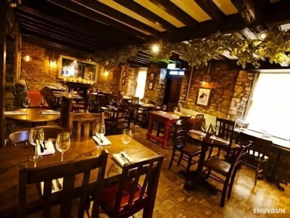 Woodstock Arms misafirlerine restoranda yemek servisi yapılıyor. Oteldeki bar/oturma salonu misafirlere içecek servisi yapıyor.